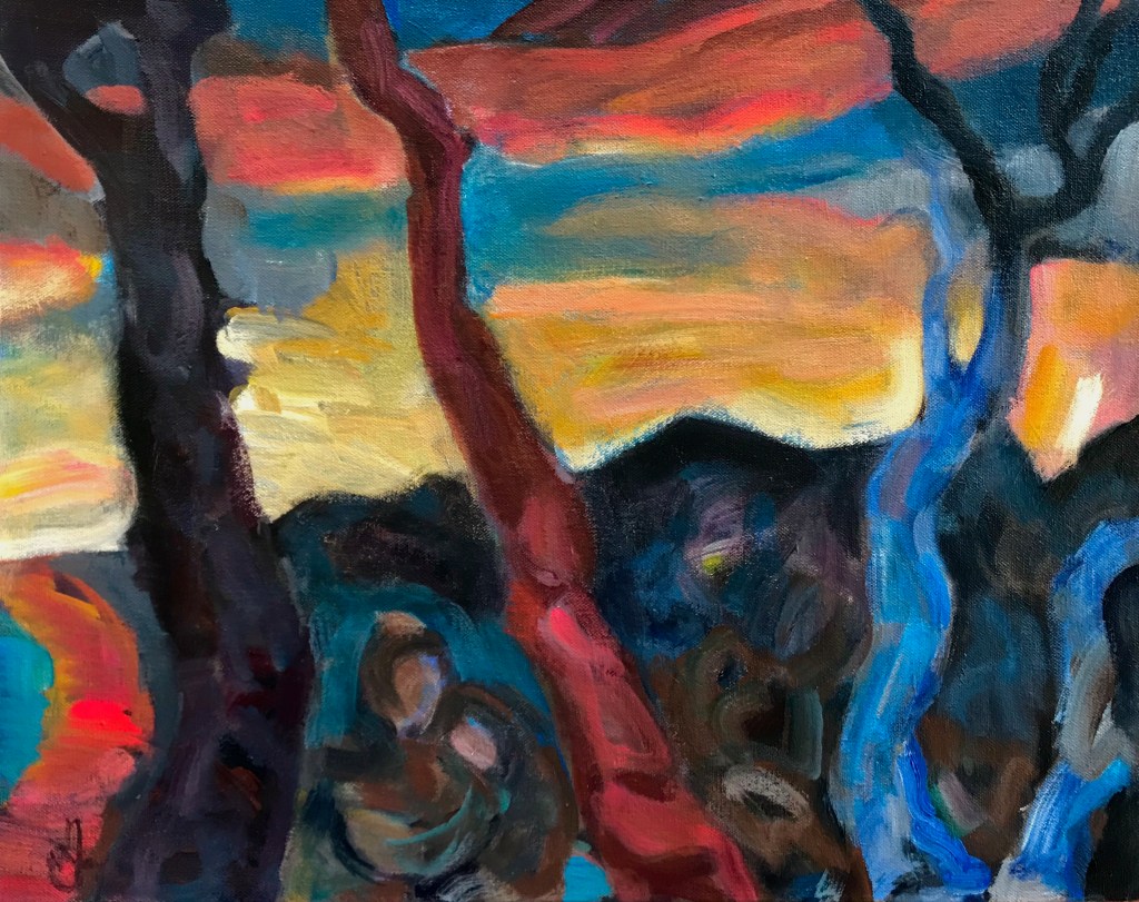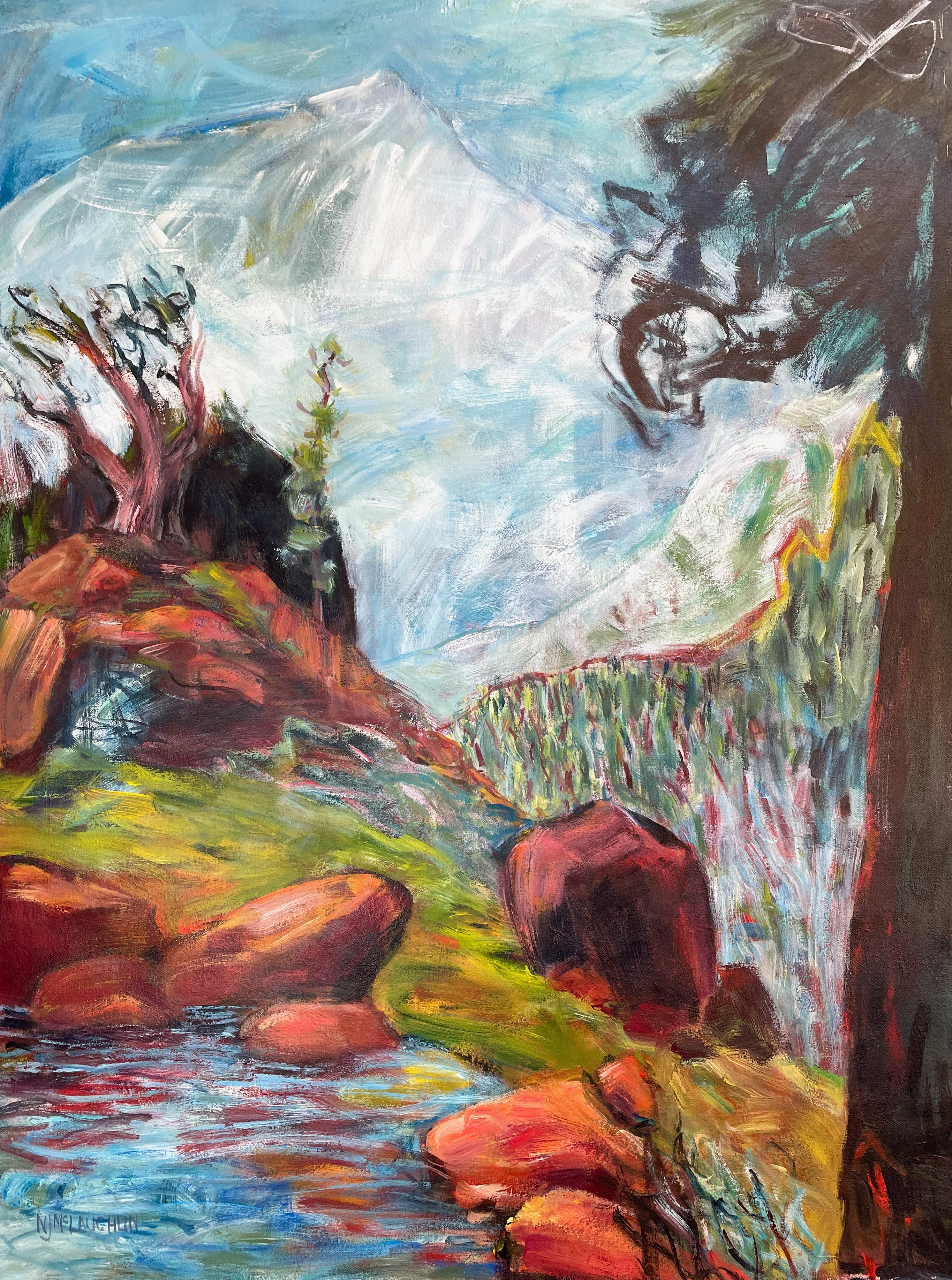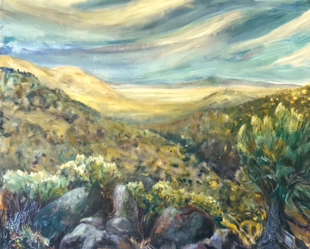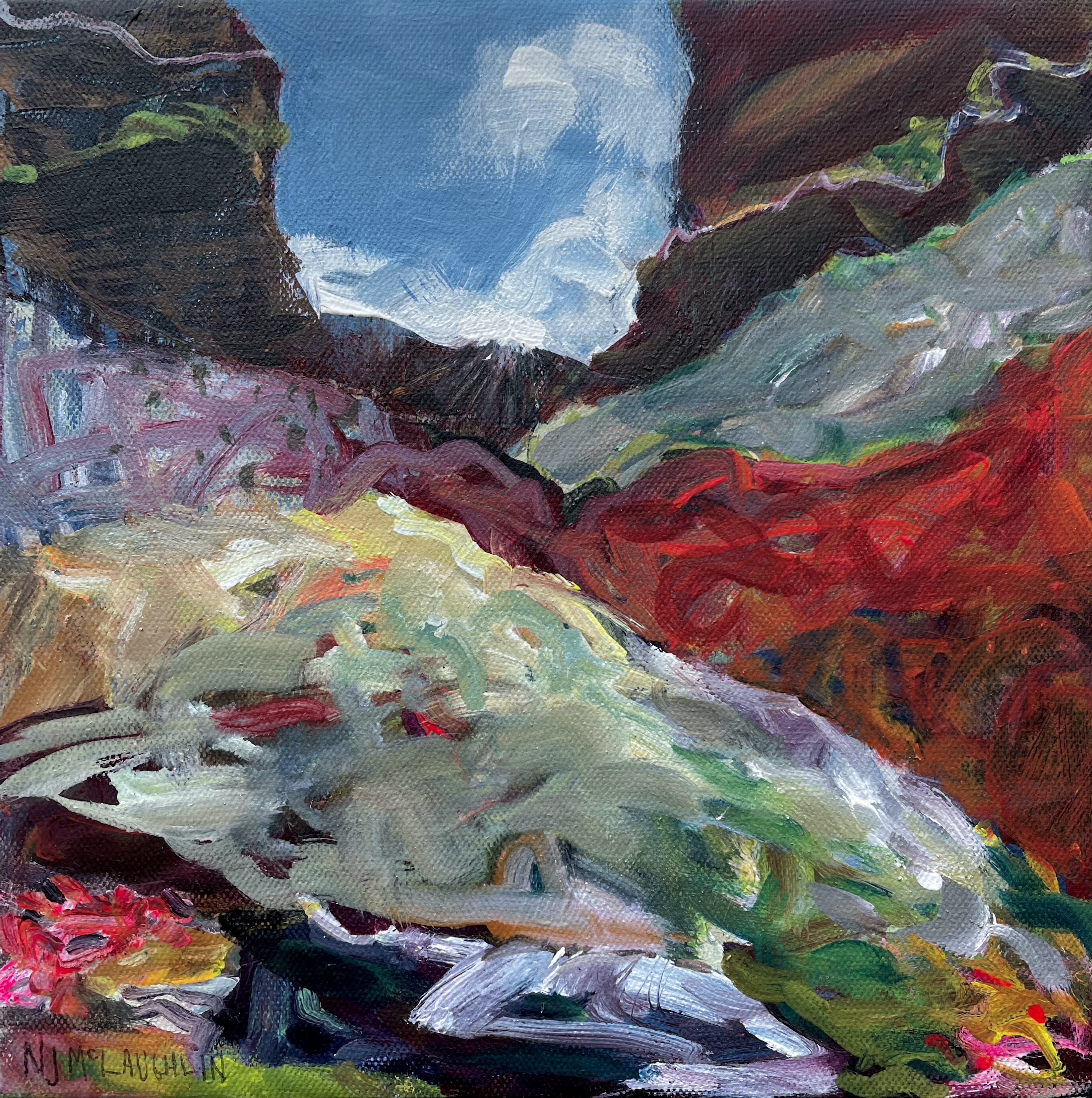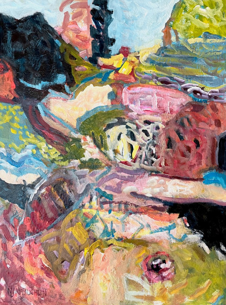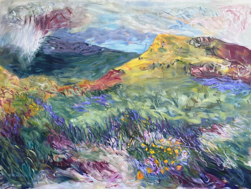 Landscapes Super Bloom / acrylic on canvas / 40 x 54 / 2023 / private collection Sunlit Canyon / acrylic on cradled panel / 2023 / private collection Incoming Tide / acrylic and Stabilo pencil on canvas / 34 x 30 / 2023 Tarn with Red Rocks / acrylic on canvas / 40 x 30 / 2023 Young Saguaro / acrylic on canvas / 60 x 54 / 2023 Mountain Mania / acrylic on cradled panel / 8 x 8 2023 / private collection Landscape with Orange Bottle / acrylic on canvas / 30 x 24 / 2023 Hillside with Pink House / acrylic on cradled panel / 16 x 12 / 2023 private collection Willow with Blue Rocks / acrylic on canvas / 38 x 24 / 2022 Glassford Hill / acrylic on canvas / 24 x 38 / 2021 At the Edge of Town / acrylic on canvas / 25×25 / 2020 Hummingbird’s Way / acrylic and oil stick on canvas / 48×50 / 2020 Heading Up / acrylic on canvas / 36×36 / 2020 View from the Ruins / acrylic on canvas / 32×40 / 2020 Natural Music / acrylic and colored pencil on canvas / 38×54 / 2020 West Coast Madonna / acrylic on canvas / 16×20 / 2020